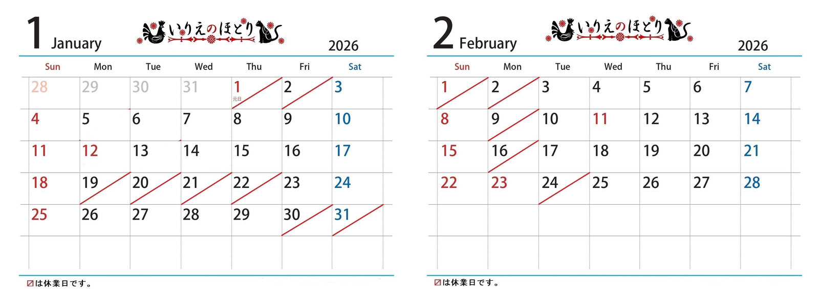 *1~2月の営業日は通常とは異なりますのでご了承ください。
