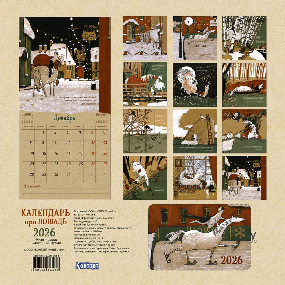 ロシアのカレンダー2026 ネコと馬のカレンダー