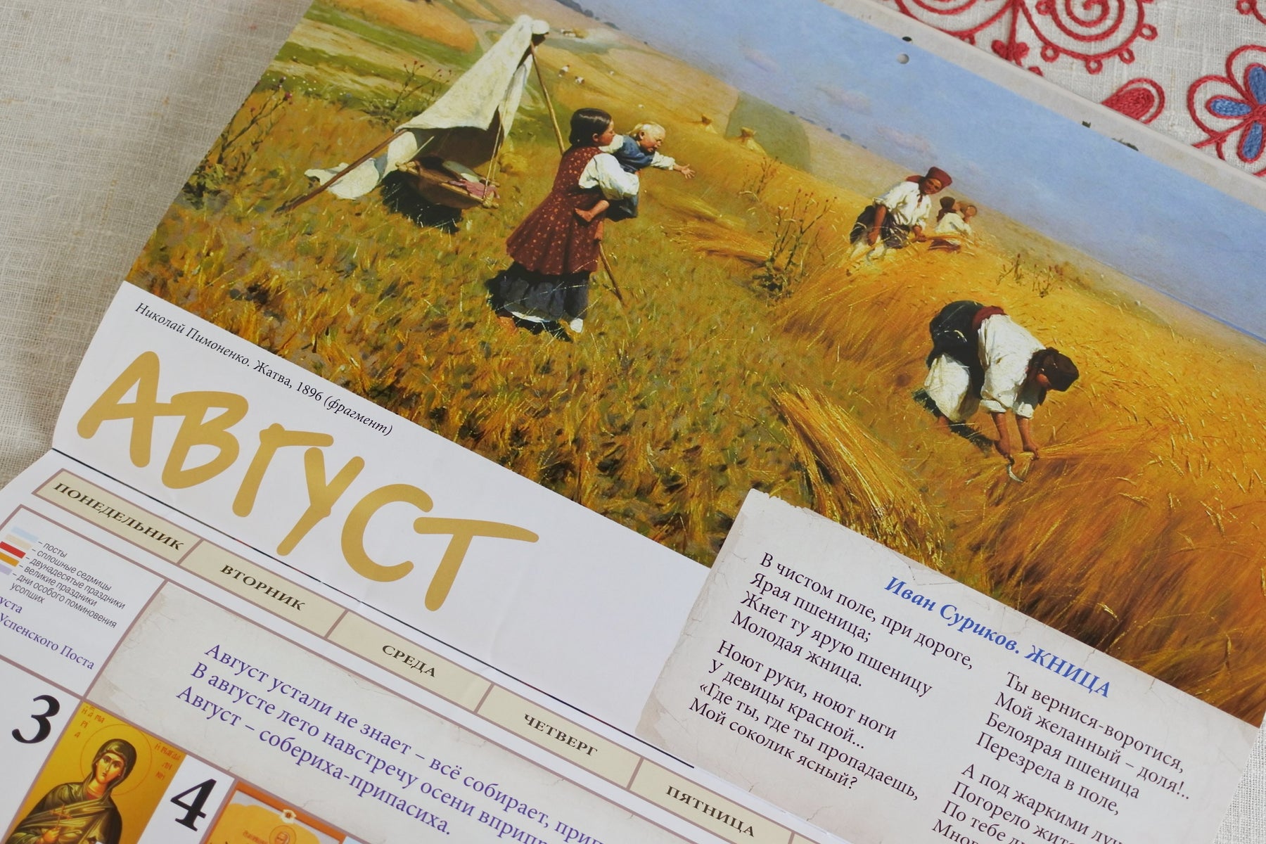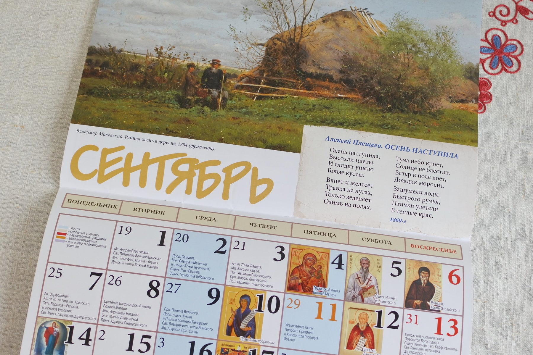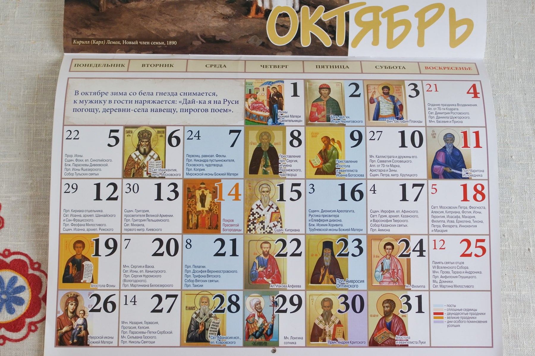 暦には日付ごとの聖人とロシア正教の行事が書かれています。