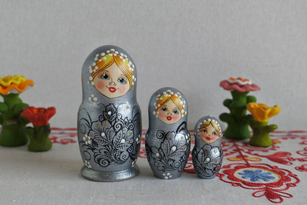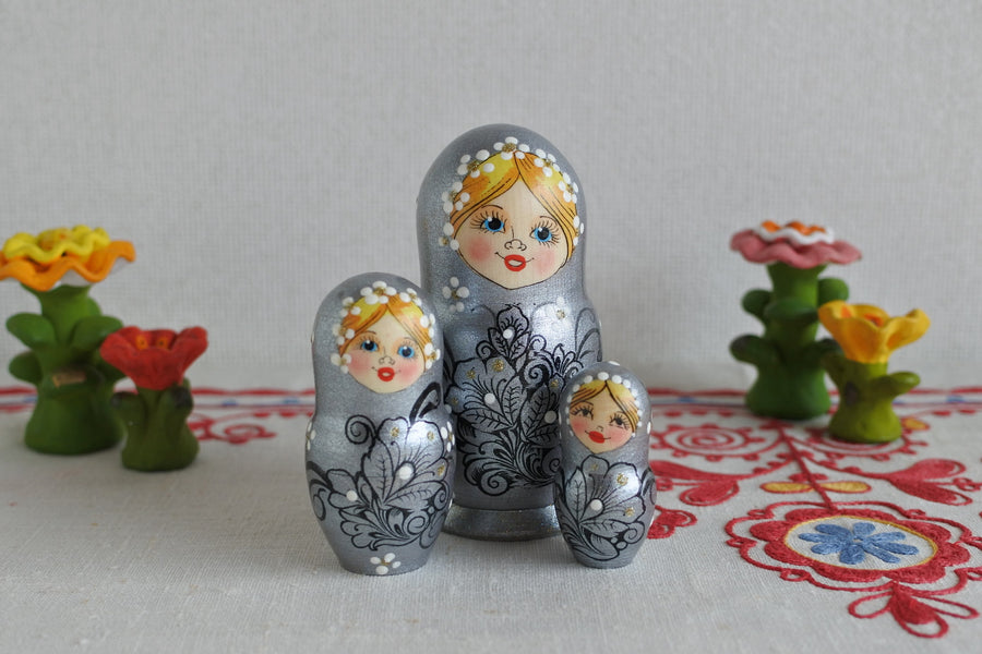 3ピース、4ピース、5ピースのマトリョーシカです