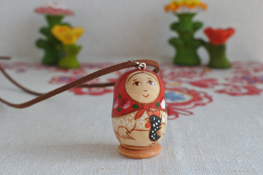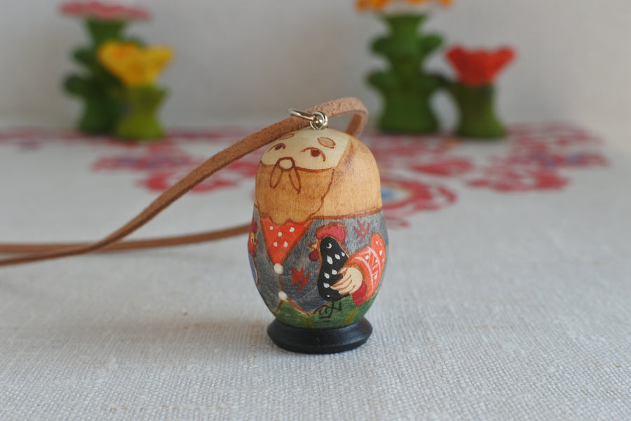 オリガ・アタジャーノワのネックレス 2羽のニワトリと農夫