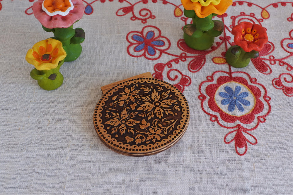 白樺の樹皮で作られる工芸品ベレスタのアクセサリー。ミラー、バングル、バレッタなど自然な風合いを楽しめます。