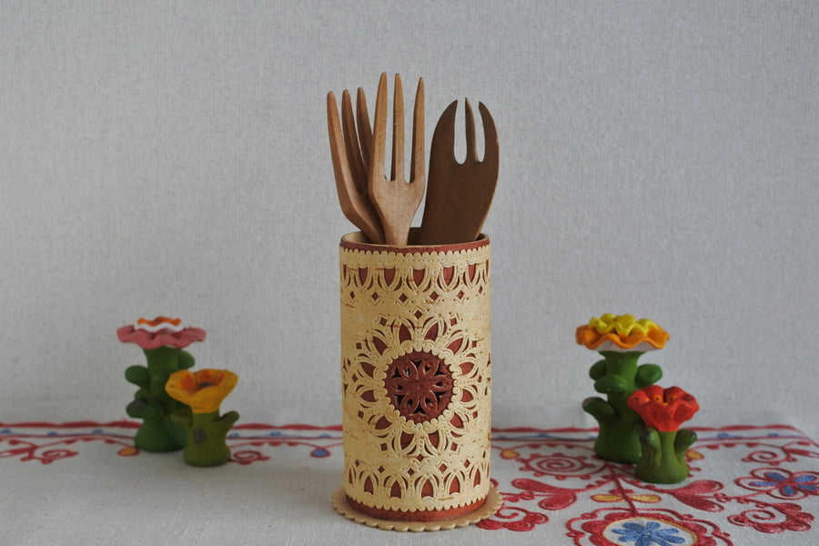 シベリアの白樺樹皮を使って作られるベレスタ。 昔、食器や保存箱など生活に欠かせない道具は白樺湿気、乾燥に強い白樺樹皮で作られていました。現在では樹皮の風合いを生かした民芸品として人々を楽しませてくれます。