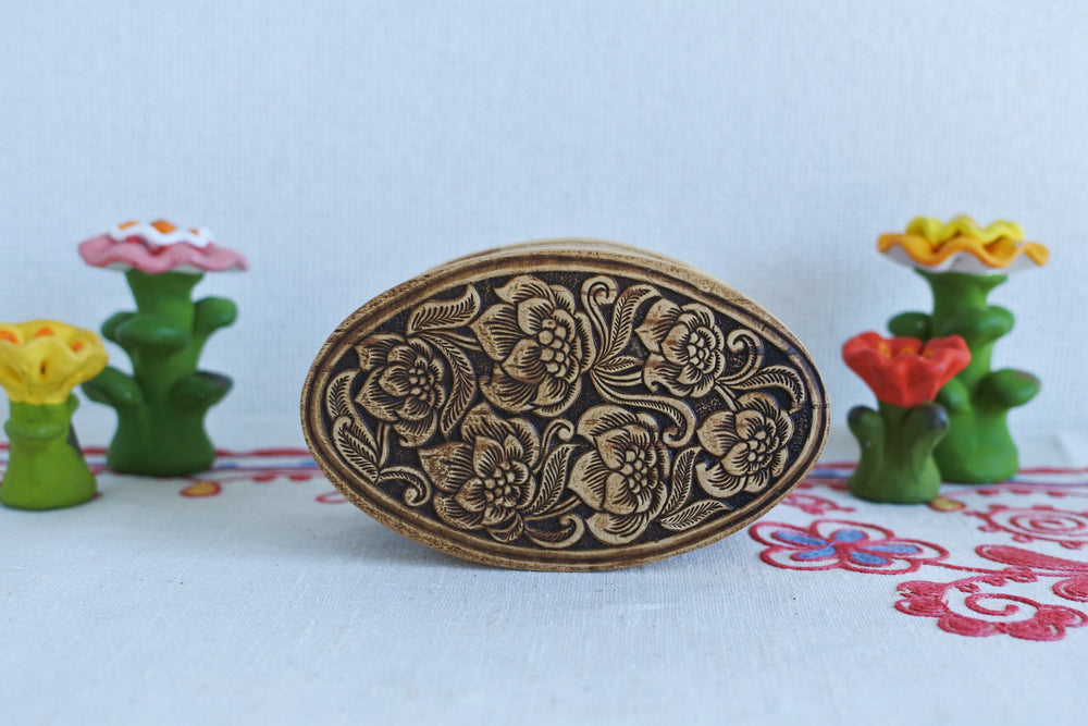 白樺細工ベレスタ おとぎ話の花 オーバル型の小箱