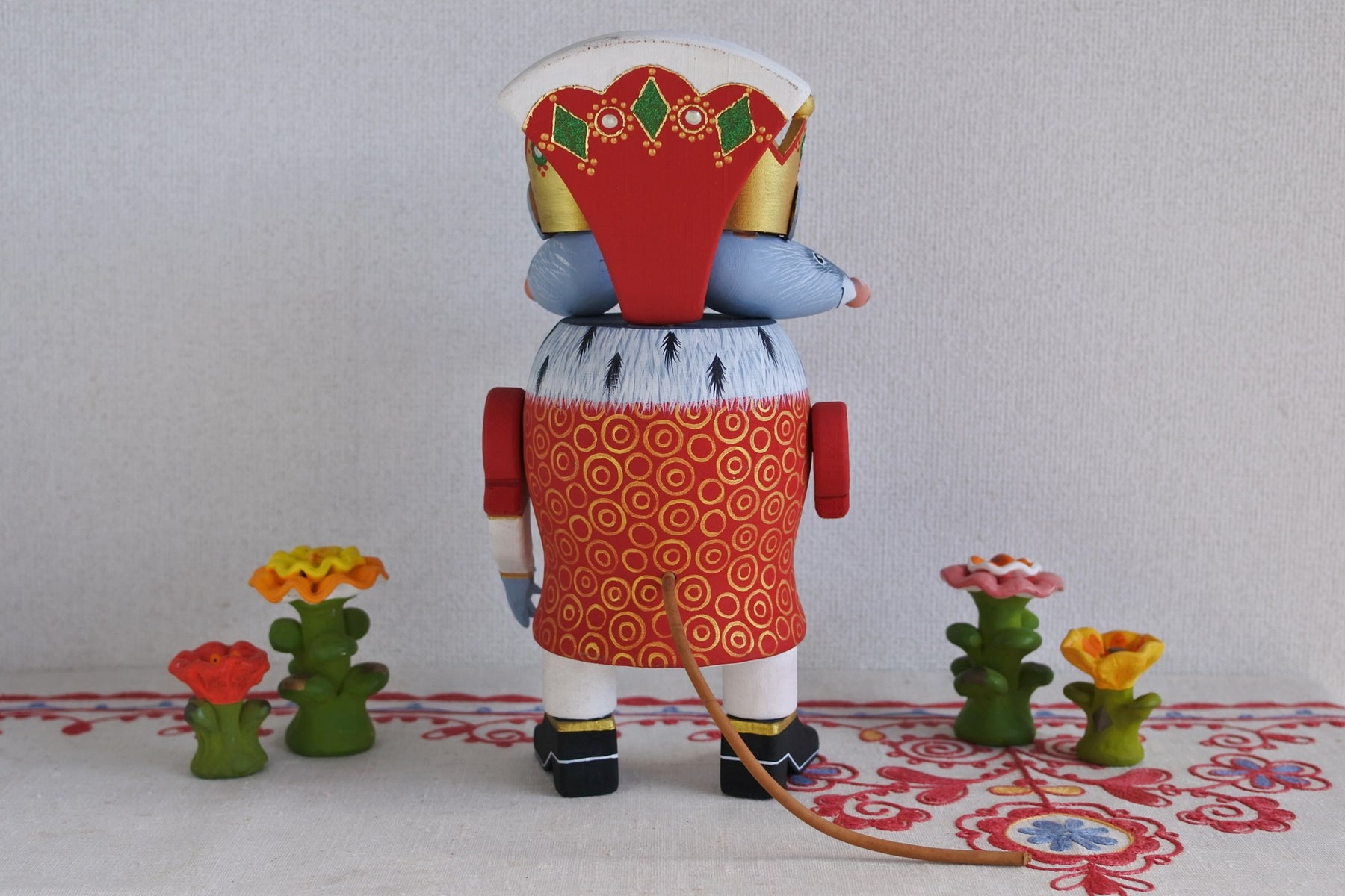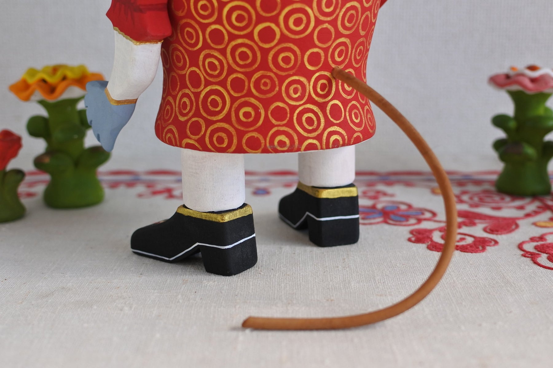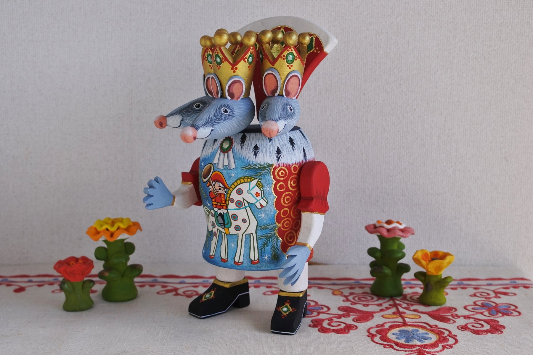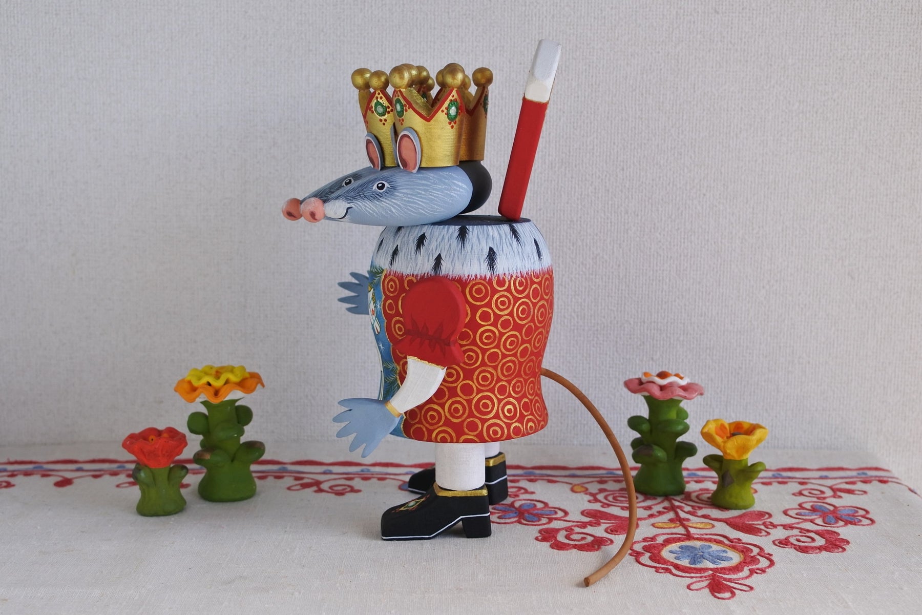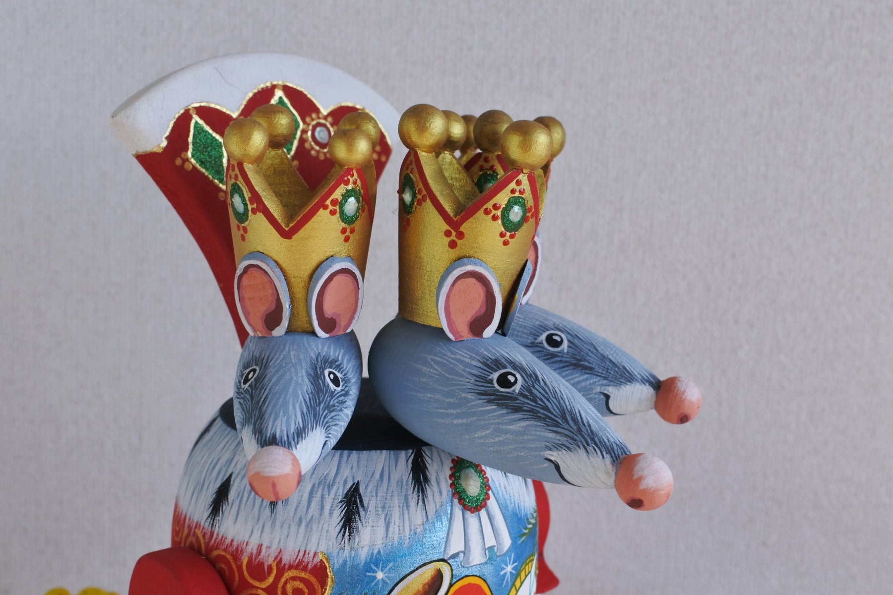 「くるみ割り人形」はクリスマスには欠かせない物語です。中でもネズミの王様は恐ろしさも含め存在感があります。王冠、マント、ブーツそして革で作られた張りのある尻尾。ペトゥホワの木製で作られたネズミの王様は色鮮やかで物語の面白さも伝えてくれます。