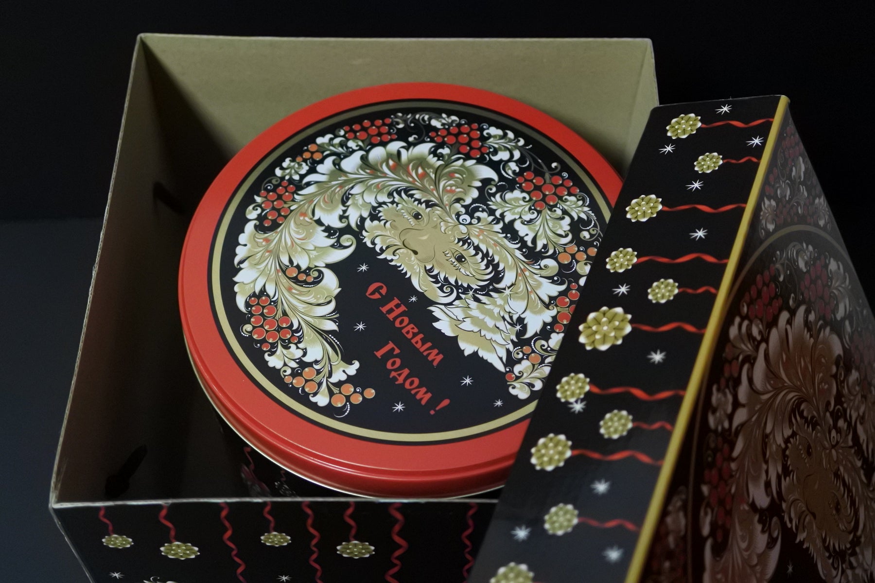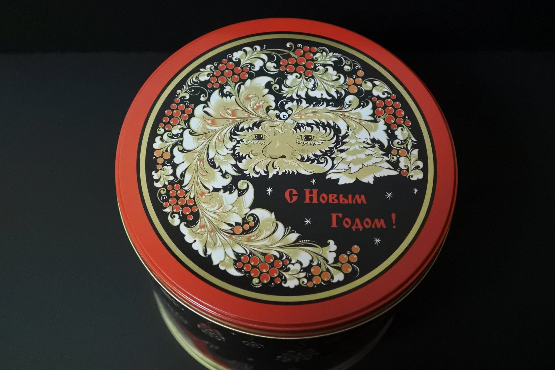 ブリキ缶に冬の使者ジェドマロースが描かれたプレゼントボックスです。ただのボックスではありません。くるくると回りながら「くるみ割り人形 行進曲」を奏でるオルゴールになっています。クリスマスボールやお菓子を詰めて、サプライズ。厚紙でできた化粧箱も付いています。