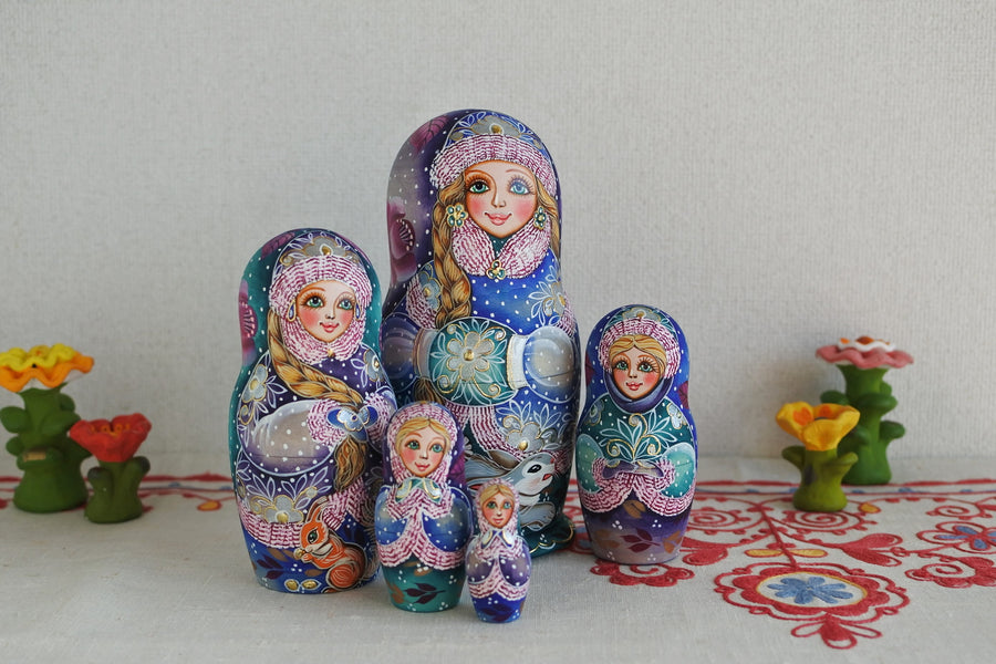 ラリーサ・クレメンティェワのマトリョーシカ 雪娘 BLUE 5P