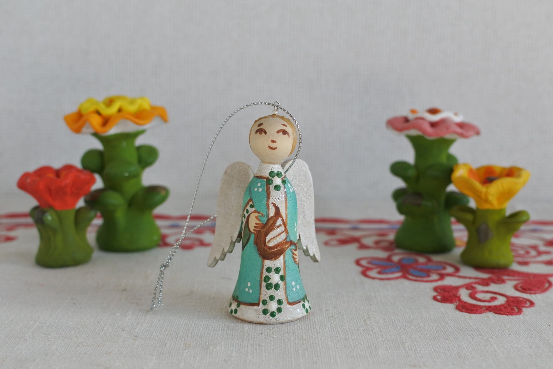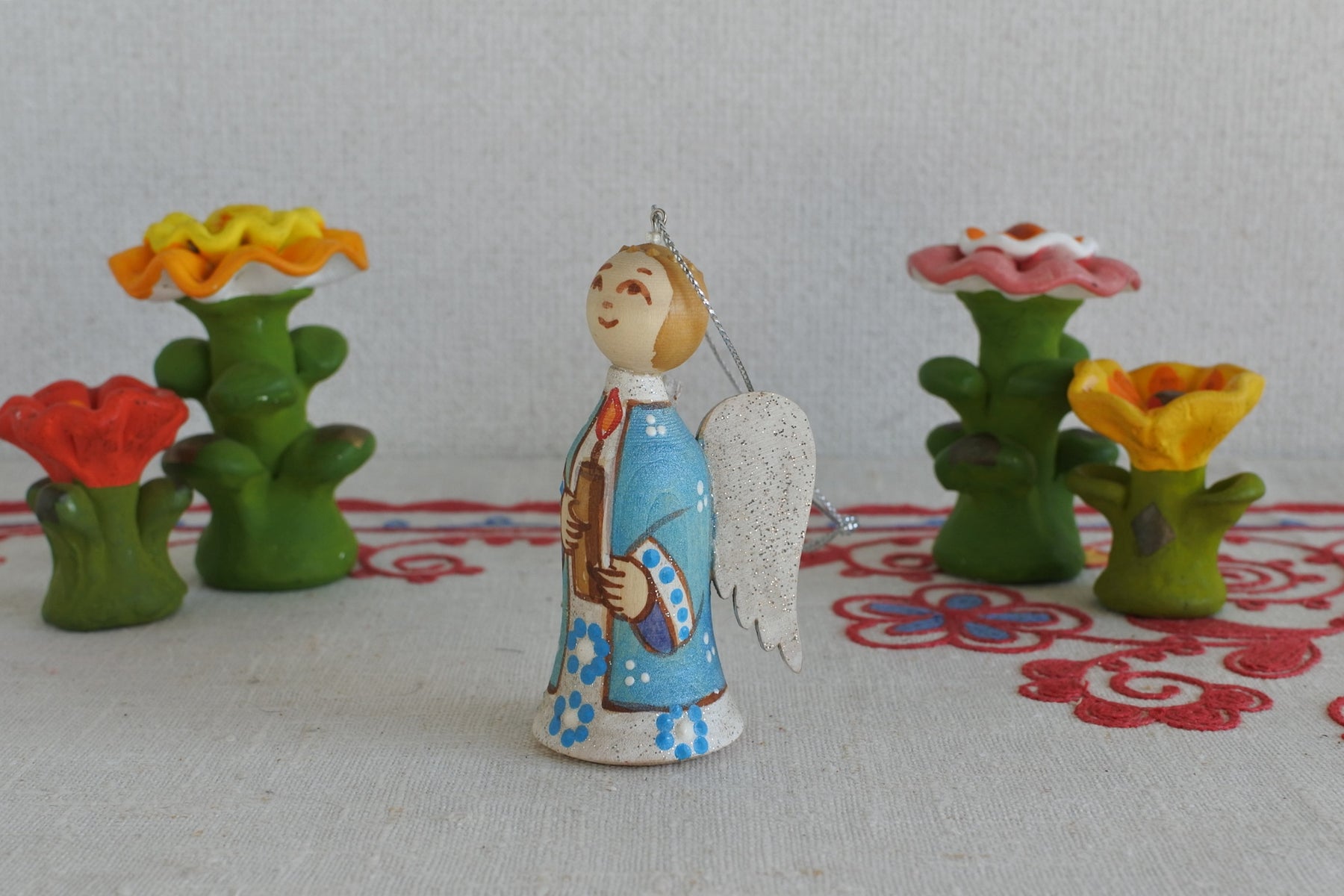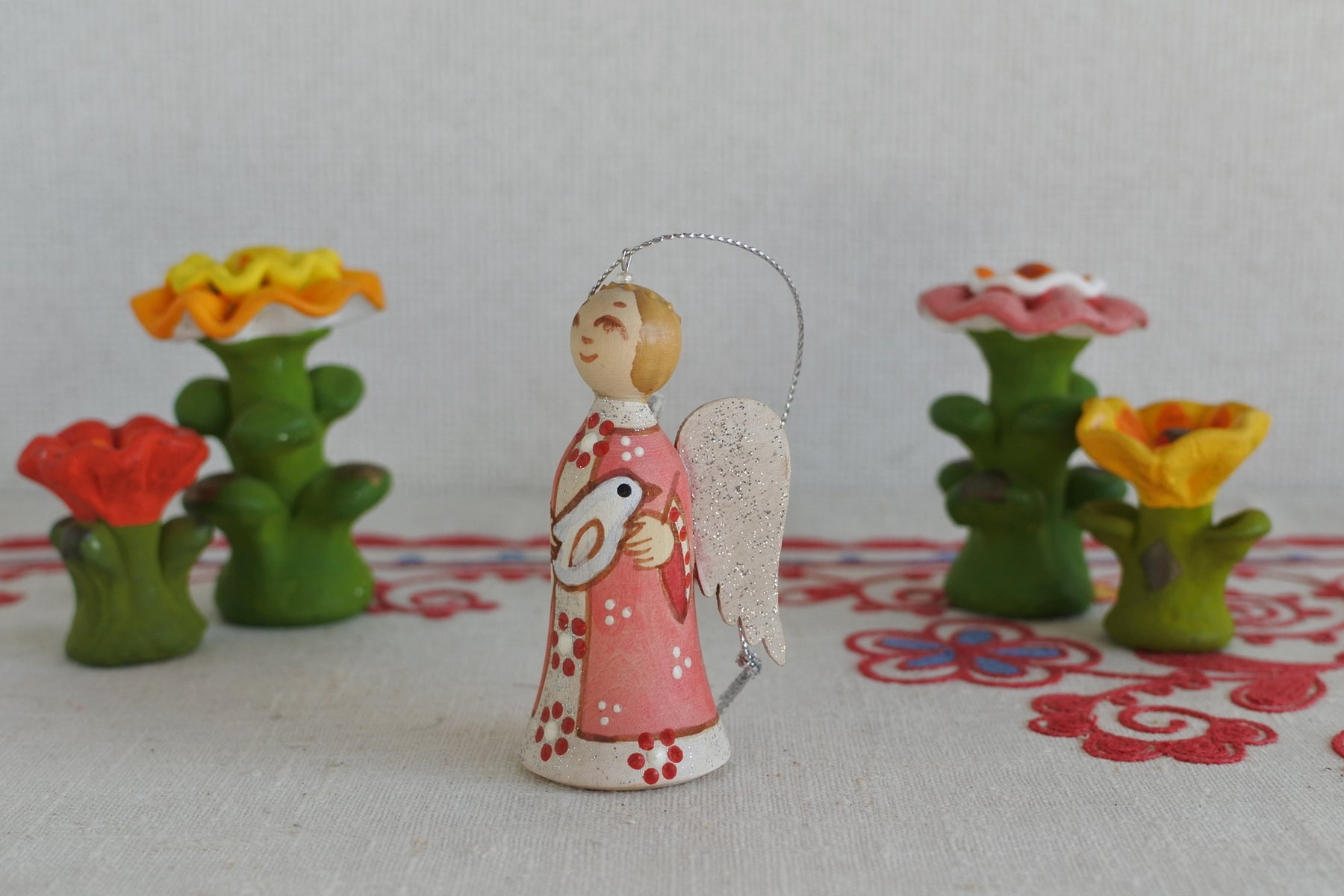 マトリョーシカ作家オリガ・アタジャーノワの天使のオーナメント。天使の大きな羽根は今にも飛んでいきそうな立体感。持っているものや色合いはもちろん、髪形や表情もそれぞれ個性があります。