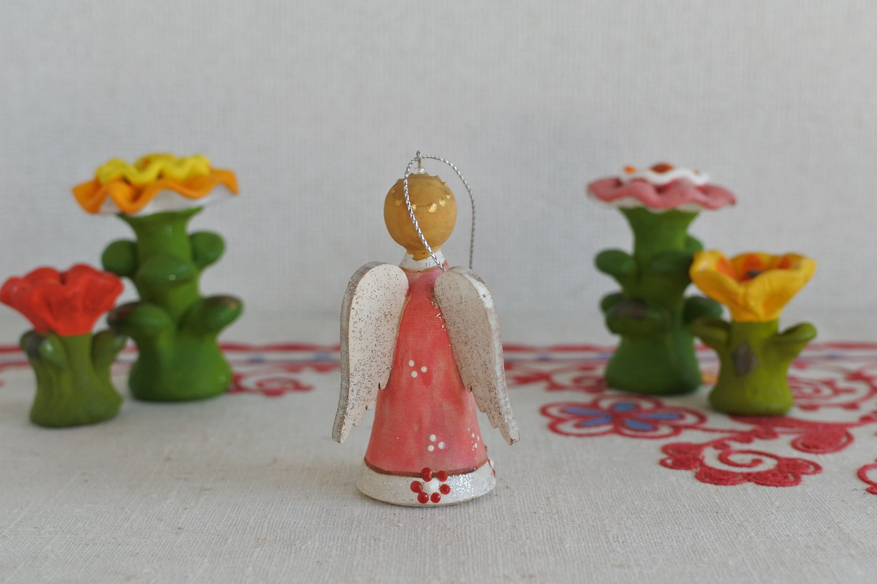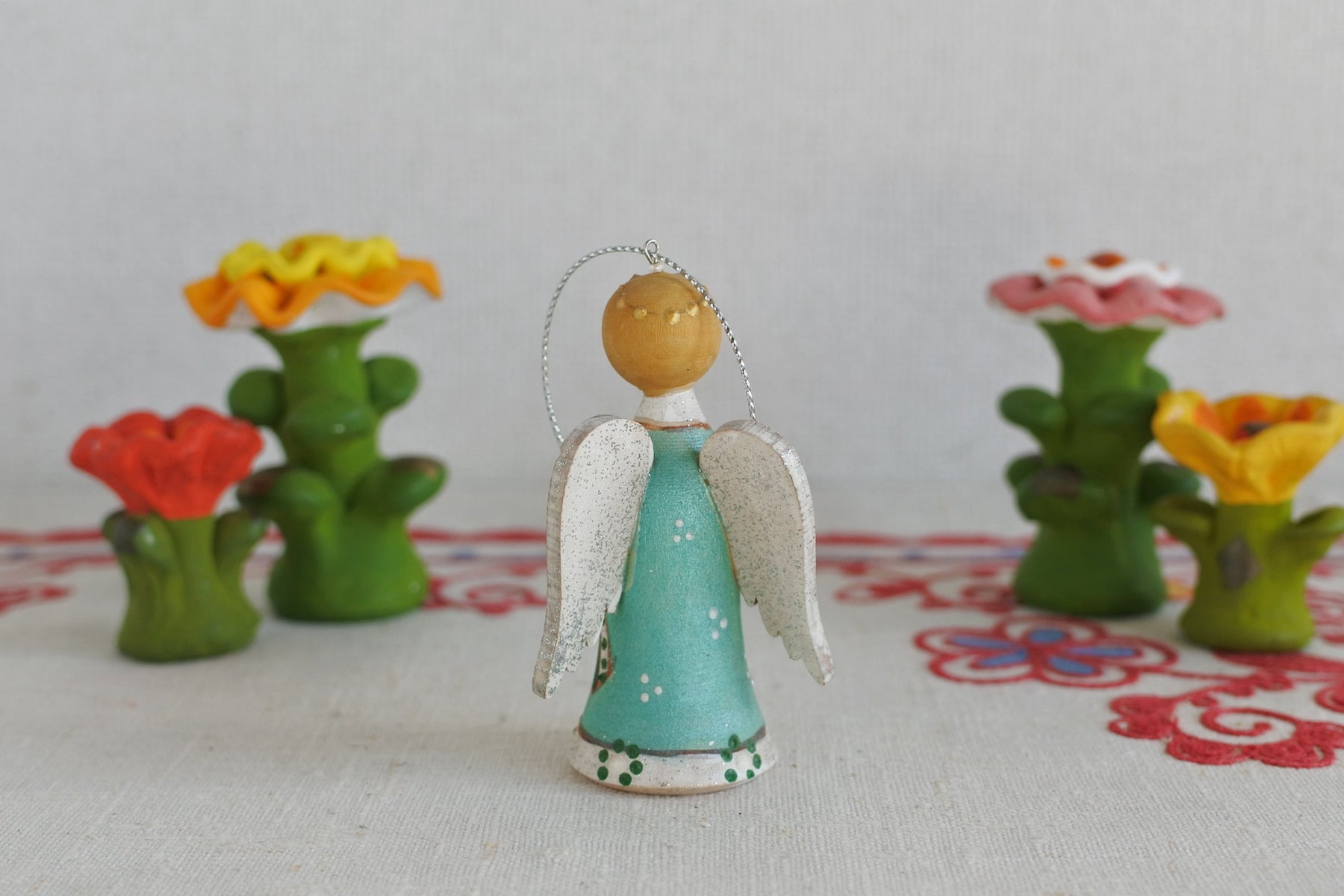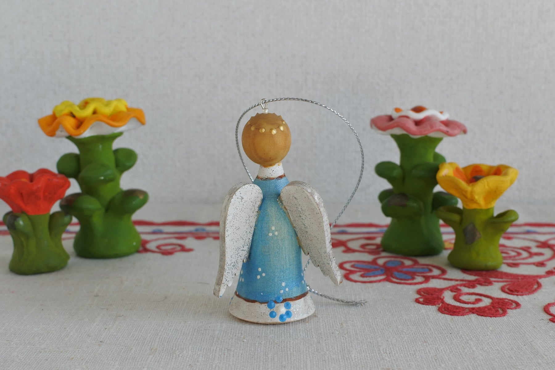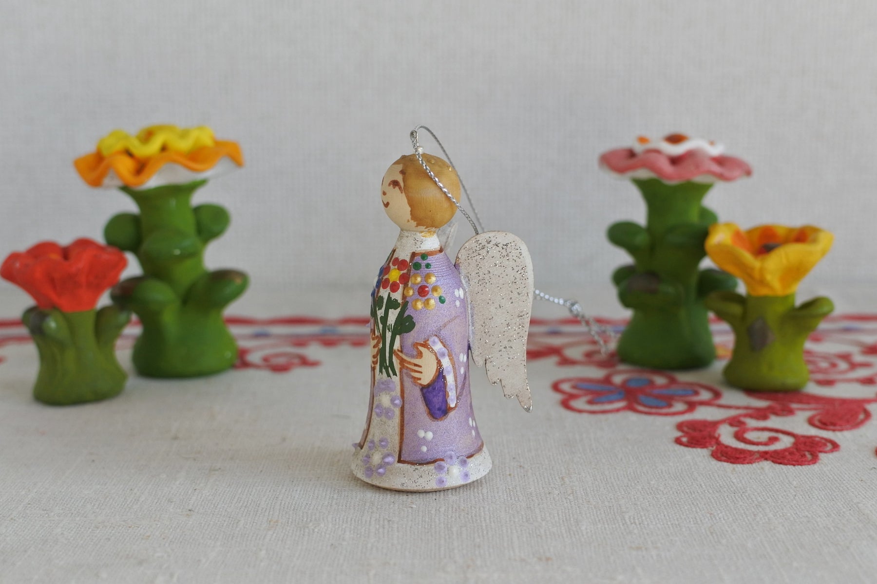 マトリョーシカ作家オリガ・アタジャーノワの天使のオーナメント。天使の大きな羽根は今にも飛んでいきそうな立体感。持っているものや色合いはもちろん、髪形や表情もそれぞれ個性があります。