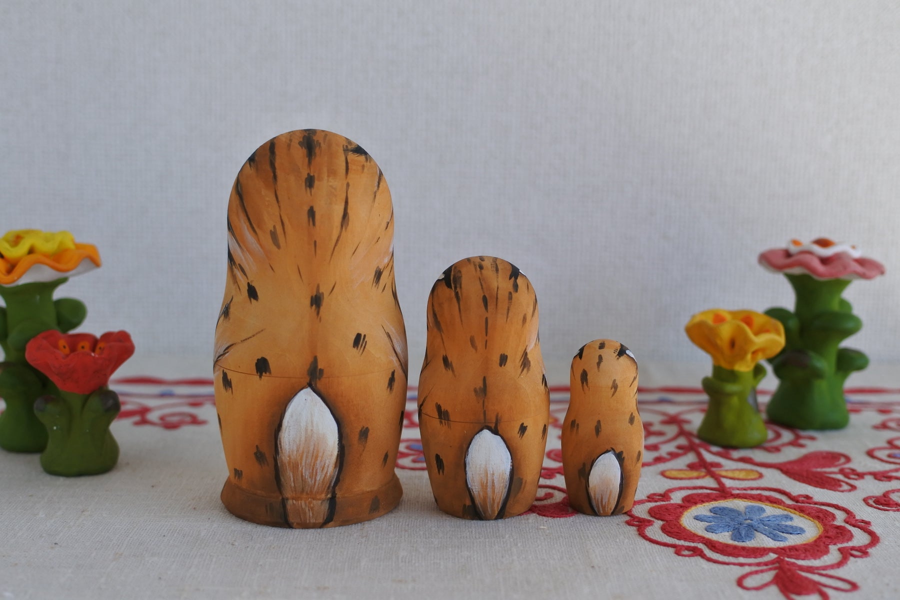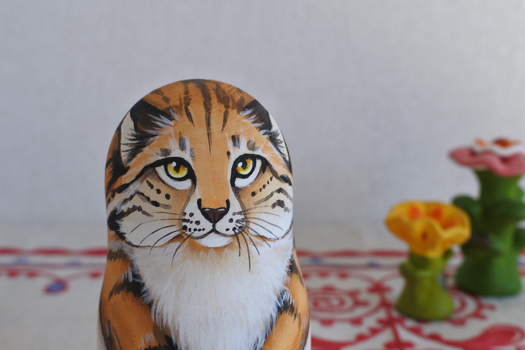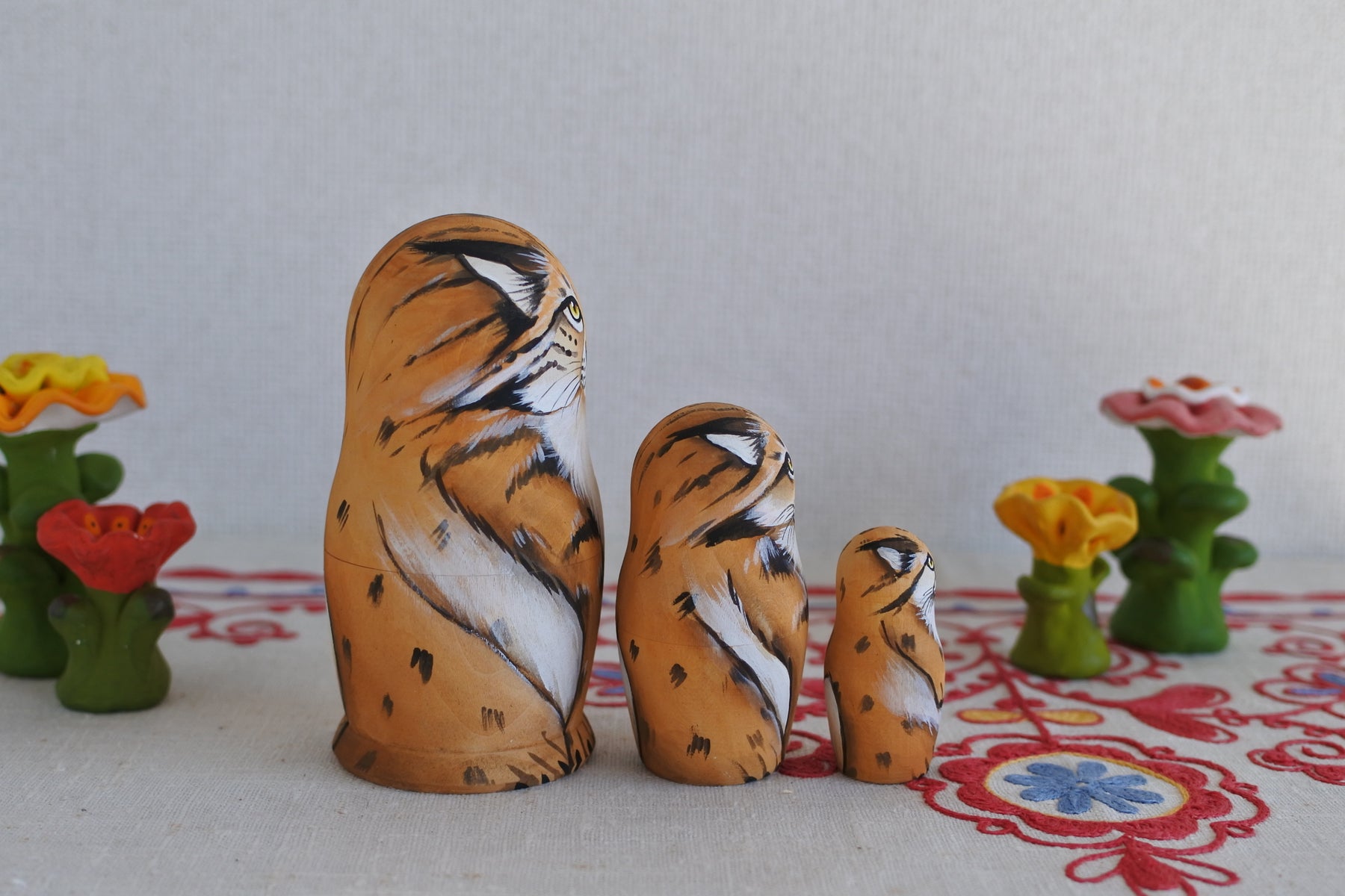 オレーシャ・スクリディナの動物マトリョーシカ。様々な動物が毎回目を楽しませてくれます。大型で毛並みの良いロシアのアムールトラ。親子揃っているとやさしい表情をしていますね。
