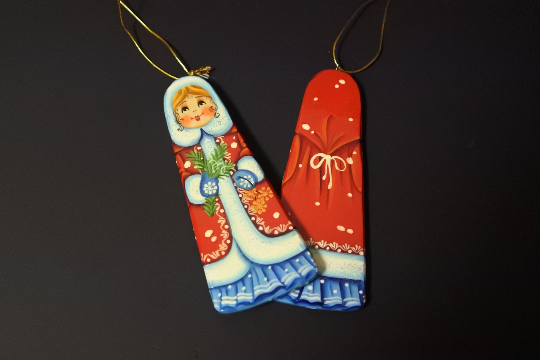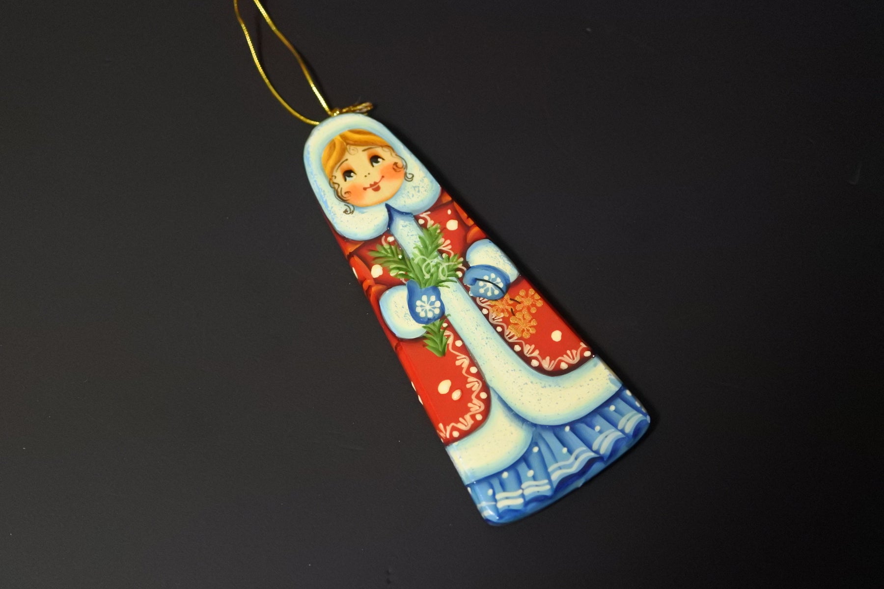 クリスマスツリーを彩るオーナメント。毎年ひとつずつお気に入りを見つけ増やしていくのもクリスマスの楽しみのひとつ。 赤いコートを羽織ったスニェグーロチカ(雪娘)。ミトンをした手にはもみの木の小枝を。