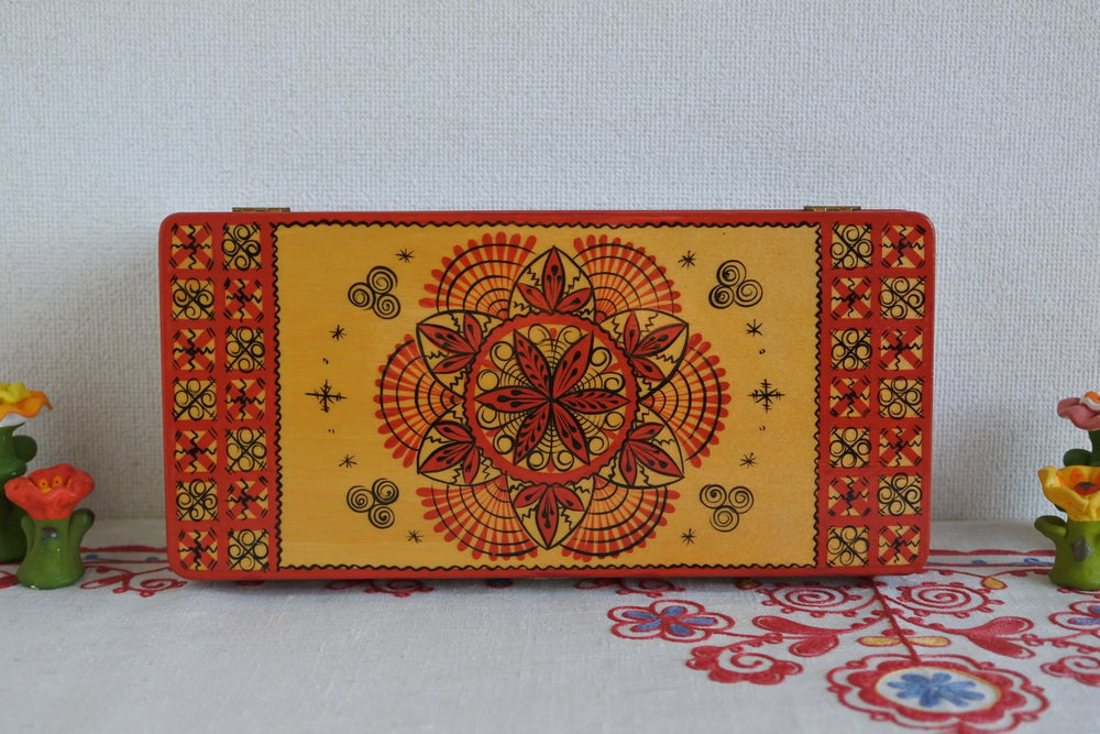 木の箱 ロシア民芸品 ワラ細工 手描き アクセサリー入れ 宝箱 ロシア雑貨いりえのほとり 神戸 北野 お土産